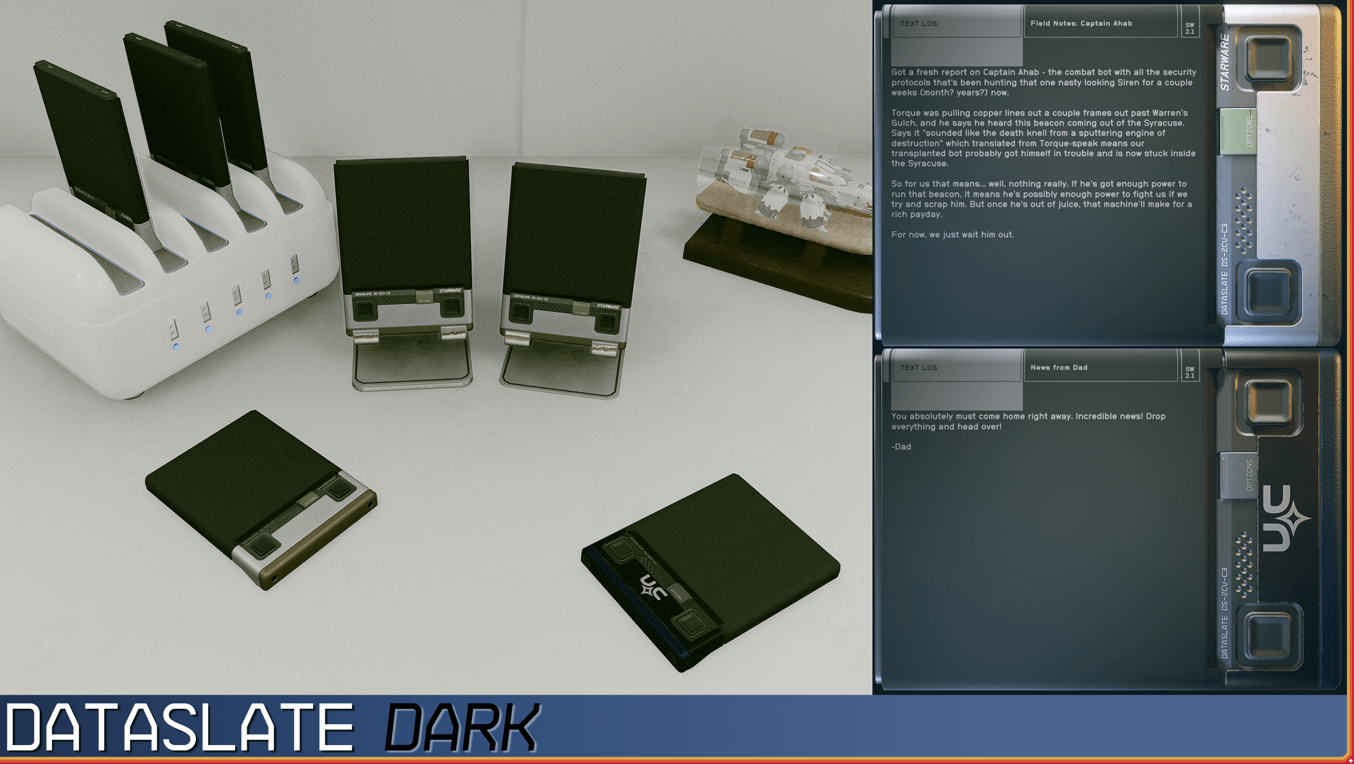 This makes it so all dataslates are in dark mode, including when you are reading them.